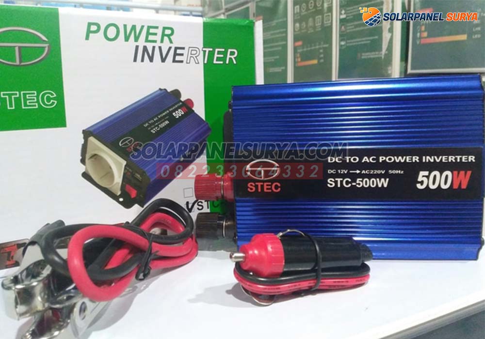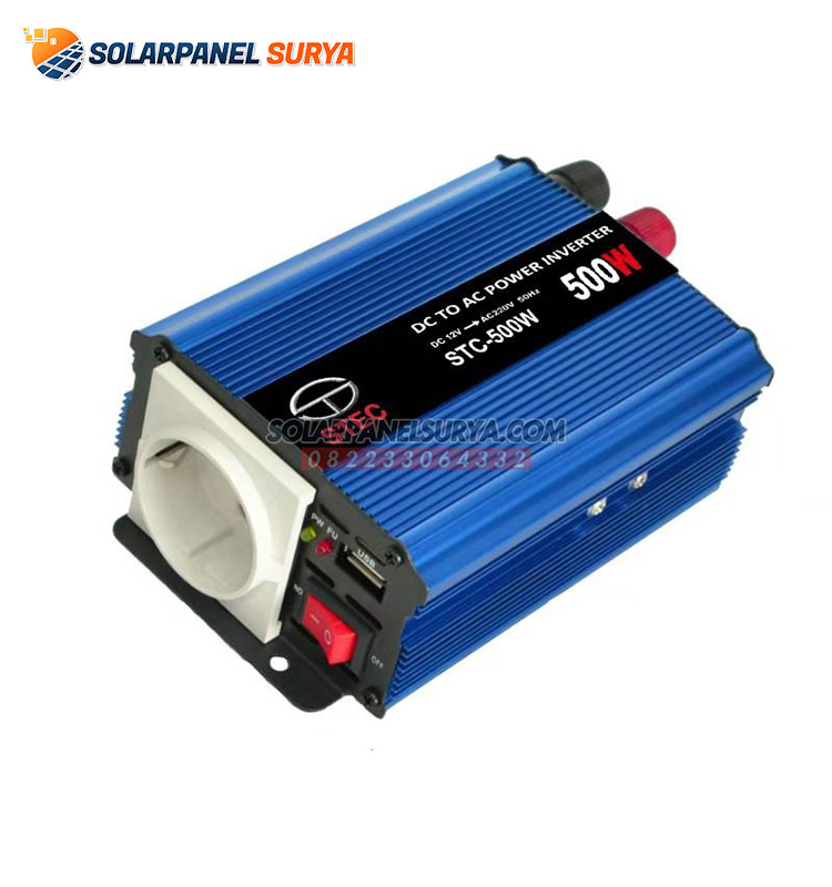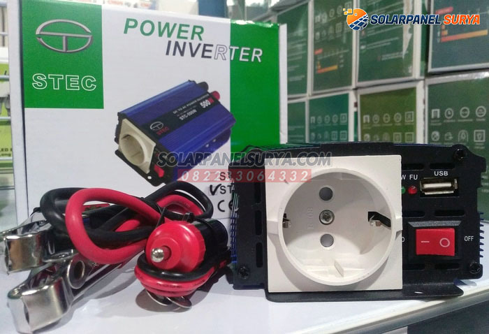 Inverter 500 watt Modified STEC adalah peralatan elektronik yang cukup penting pada instalasi pada Tenaga Surya yang berfungsi mengubah arus listrik searah / DC (Direct Current) menjadi arus bolak balik / AC (Alternating Current). Selain mengubah arus listrik, power inverter juga berfungsi menstabilkan tegangan listrik yang dihasilkan.