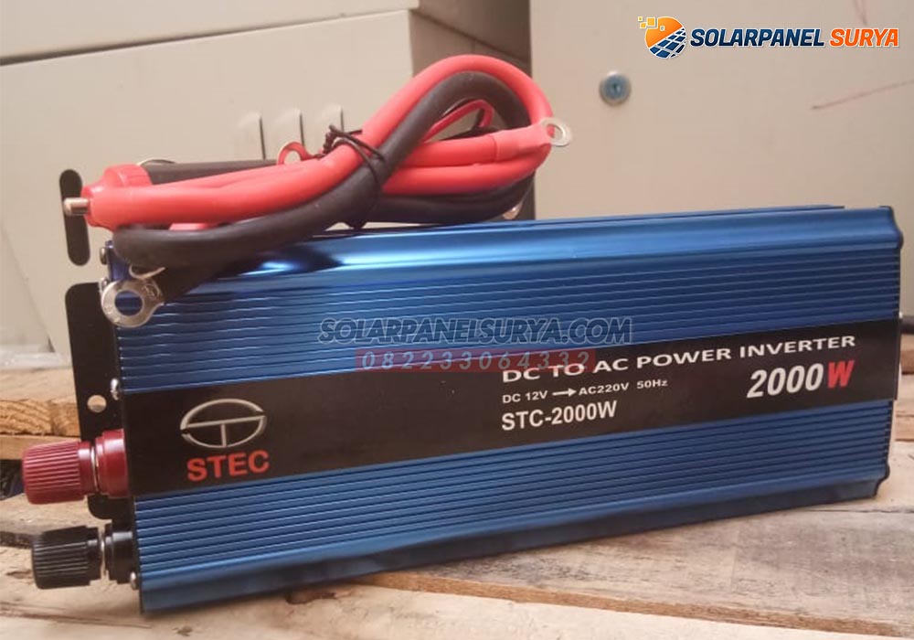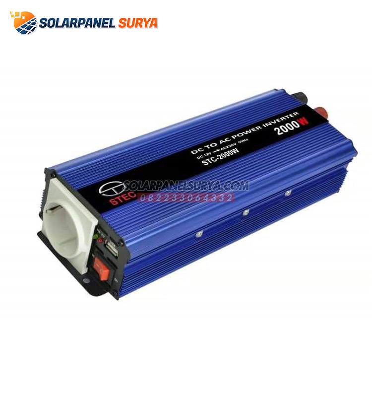 Inverter Modified Sine Wave 2000 watt STEC adalah peralatan elektronik yang cukup penting pada instalasi pada Tenaga Surya yang berfungsi mengubah arus listrik searah / DC (Direct Current) menjadi arus bolak balik / AC (Alternating Current). Selain mengubah arus listrik, power inverter juga berfungsi menstabilkan tegangan listrik yang dihasilkan.