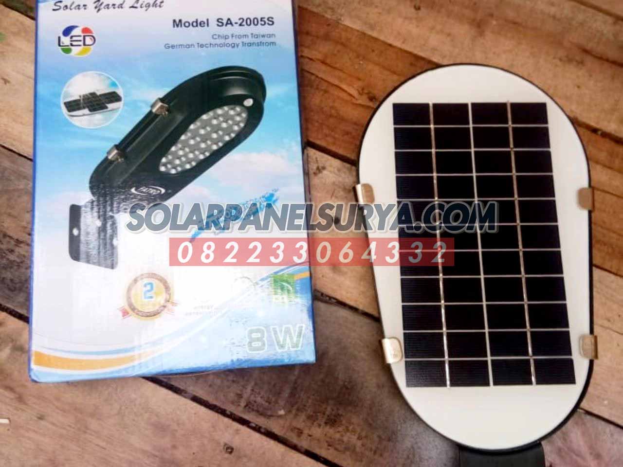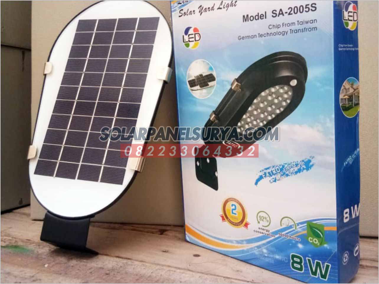 PJU Solar Cell 8 watt | 8w | Penerangan Jalan Umum (PJU) 8watt adalah penerangan jalan Desa dan Taman kota. Teknologi terbaru mengunakan sistem Lampu pju all in one solarcell atau Integrated solar street di buat systematis, fugsional dan efisiean. Peralatan pendukung seperti Modul panel surya, aki, box aki, kontroler, Lampu LED, kabel dll tidak terpasang terpisah seperti tipe konvensional. Lampu jalan tenaga surya All In One dibuat menjadi satu unit yang ditanam dan menempel pada kap lampu nya.